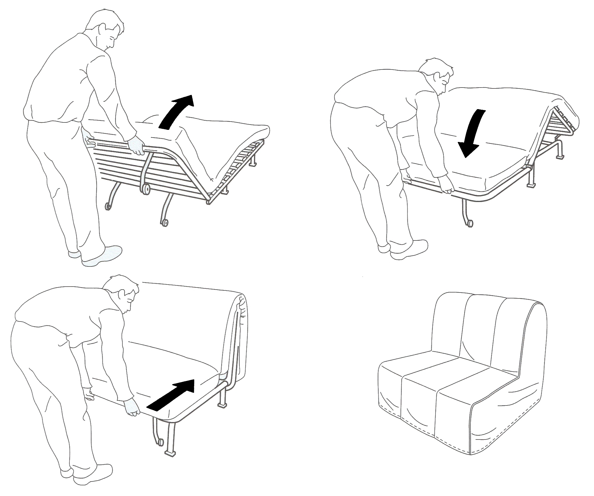 In order to close the bed again and to convert it to an armchair, please study the following instructions: